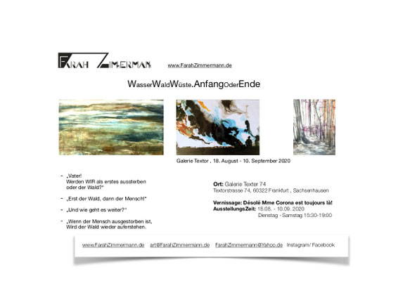 Ausstellung: "WasserWaldWüste. AnfangOderEnde", Galerie Textor, 18.August-10. September 2020